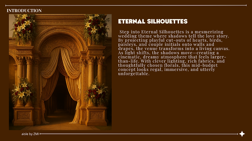 ZMI Studio is a creative design agency specializing in big fat wedding 3D visuals, renderings, moodboards, fabrication drawings, and curated design workshops.